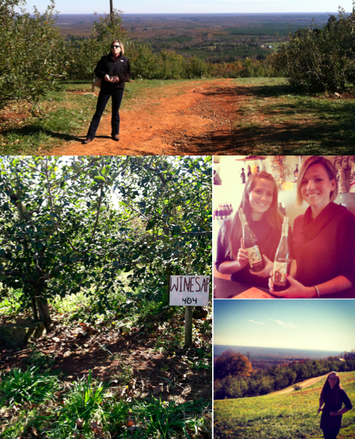 After that, we drove to her aunt and uncle's orchard at the top of Carter Mountain. It's a bit of a steep drive (for those of us from Virginia Beach, anyway), but not long at all. At the top you have a beautiful view of Charlottesville, as well as a winery where you can taste their wines and an orchard where you can buy apples, cider, and more.